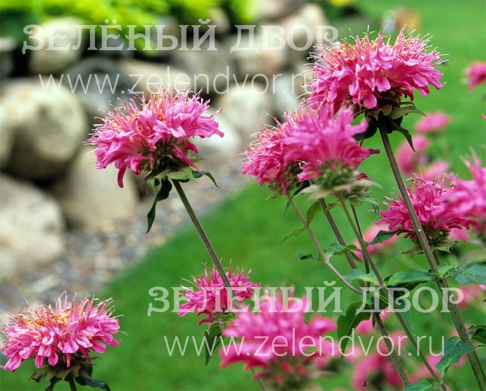 Монарда — эффектное многолетнее растение с крупными пёстрыми соцветиями. Вырастает до 150 см в высоту. Цветёт летом с июня по август, образуя цветы белого, красного, розового или фиолетового оттенков, которые источают приятный цитрусовый аромат. Предпочитает солнечные места и слегка дренированную почву.