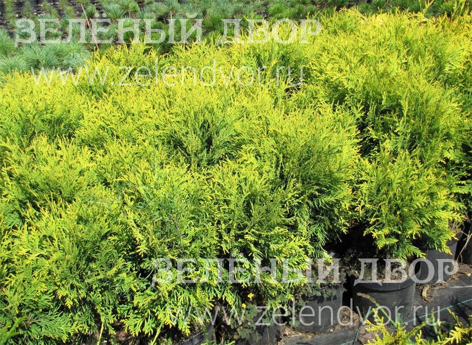 Саженцы туи западной Голден Глобе выращены в собственном питомнике растений в Подмосковье