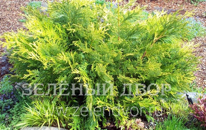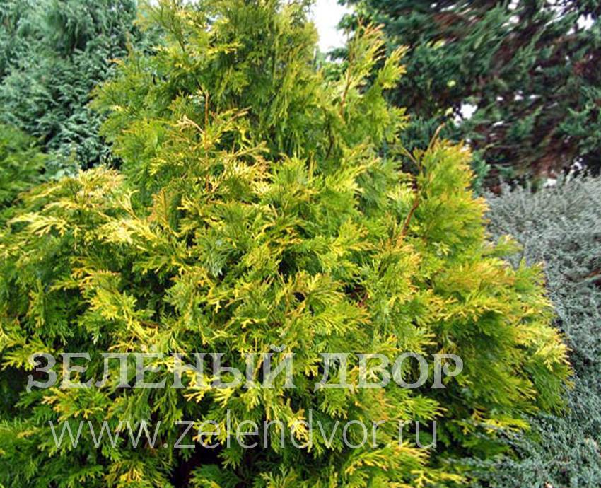 Саженцы туевика туепсис аурея выращены в собственном питомнике растений в Подмосковье